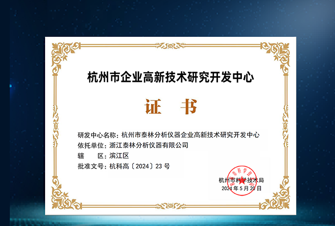 創(chuàng)新實(shí)力再獲肯定!泰林分析榮獲杭州市企業(yè)高新技術(shù)研究開發(fā)中心認(rèn)證